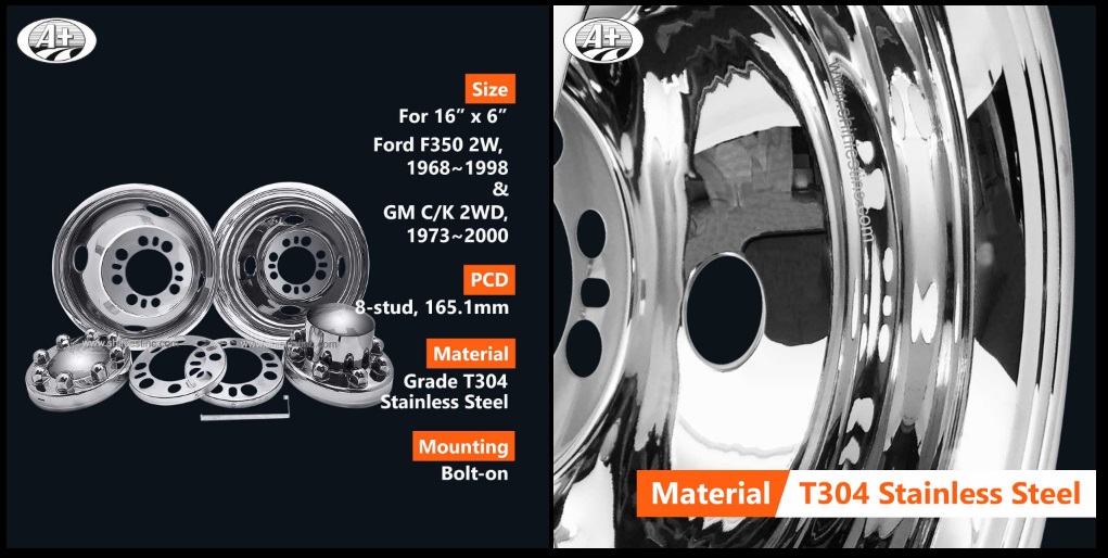 16"x 6"T304 S/S Wheel Cover Set for Ford F350 2W & GM C/K 2WD