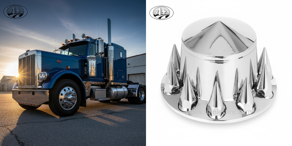 Truck Shows: The chrome spike design is popular among custom truck enthusiasts.
