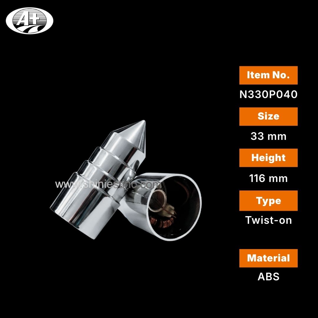 In the competitive world of heavy-duty truck customization, standing out is everything. While standard smooth spikes are common, the 33mm Chrome ABS Tiered Spike Lug Nut Cover offers a distinct, aggressive aesthetic that captures attention immediately. The "tiered" design features ridges along the body of the spike, reflecting light from multiple angles and adding a level of detail that standard covers cannot match. This product is a top-tier choice for chrome shops, truck stops, and aftermarket distributors looking to offer their customers something unique for their Peterbilt, Kenworth, or Freightliner rigs.