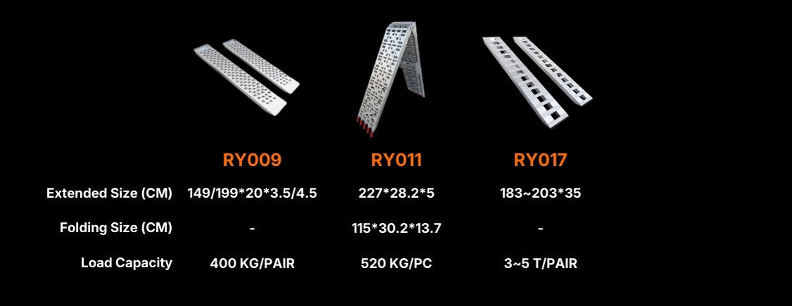 Our product line is defined by specialized surface engineering. For off-road and heavy machinery, our ATV Loading Ramps (Series RY002/005/007/008/011) feature aggressive punch-plate or mesh textures, ensuring maximum traction for muddy tires. Conversely, our newly introduced Suitcase Ramps (RY013 Series) are designed with a focus on pedestrian and wheelchair safety. These ramps feature a high-friction, non-slip grip tape surface, providing a smooth yet secure path for wheelchairs, electric scooters, and hand trucks.