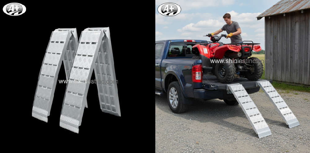 A2: The Arched Aluminum Ramps are specifically designed to eliminate the "break-over angle." This is crucial for loading vehicles with low ground clearance, such as chopper motorcycles or ride-on mowers, preventing them from getting stuck or scraping the tailgate edge.